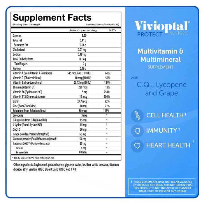 Vivioptal Protect for Men is a formula designed specifically for the mind and body of men. With antioxidants that protect against free radicals and ingredients that enhance mental performance.
