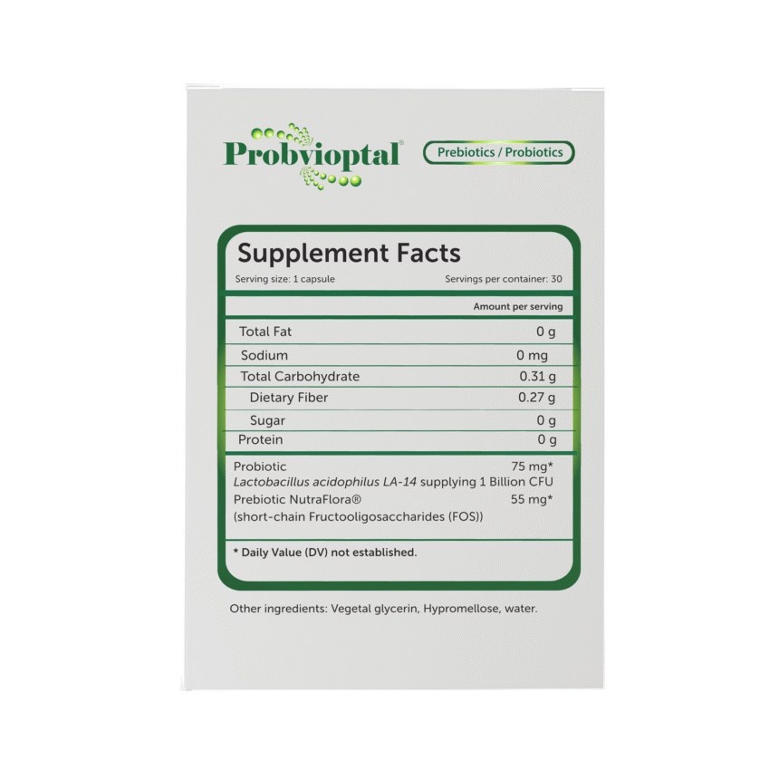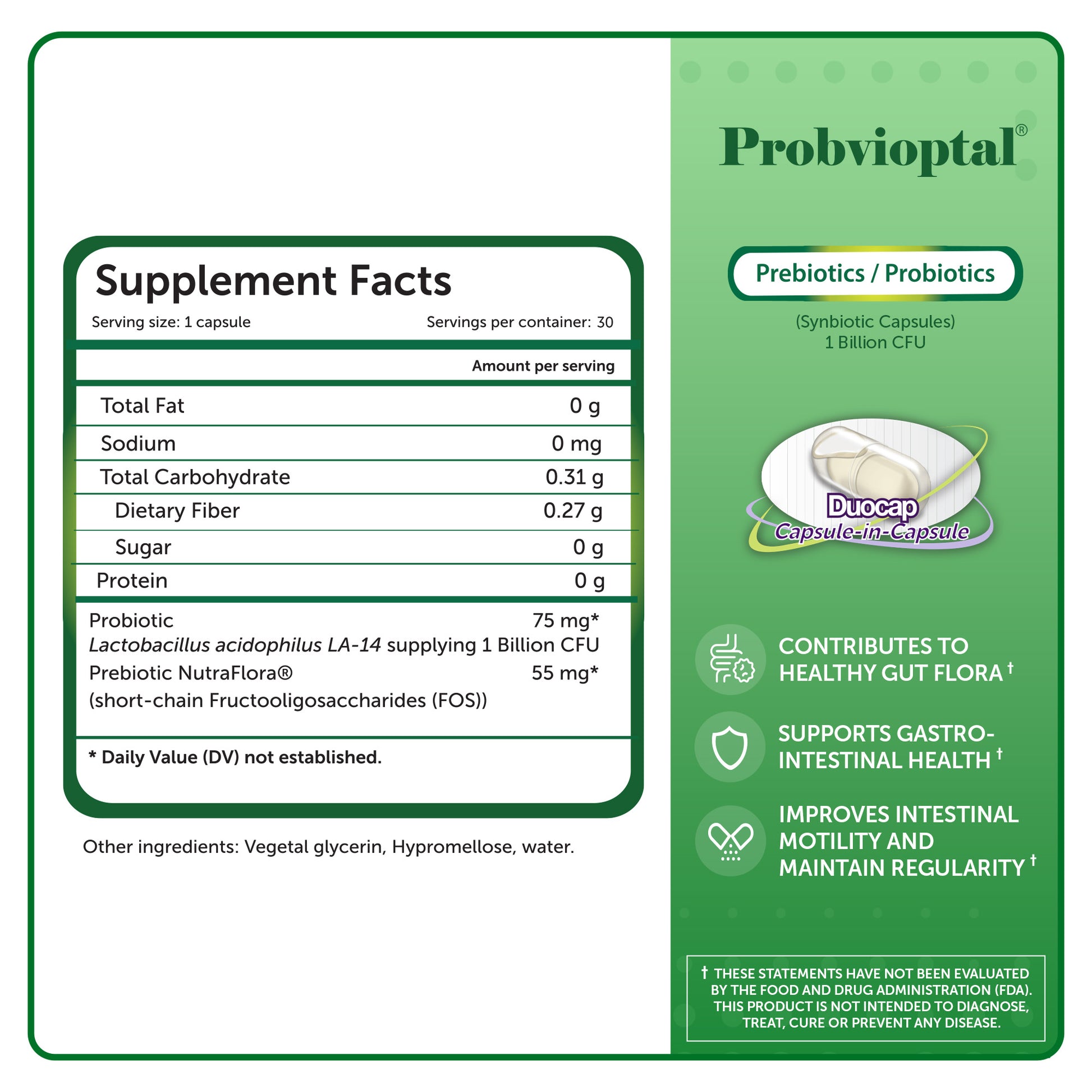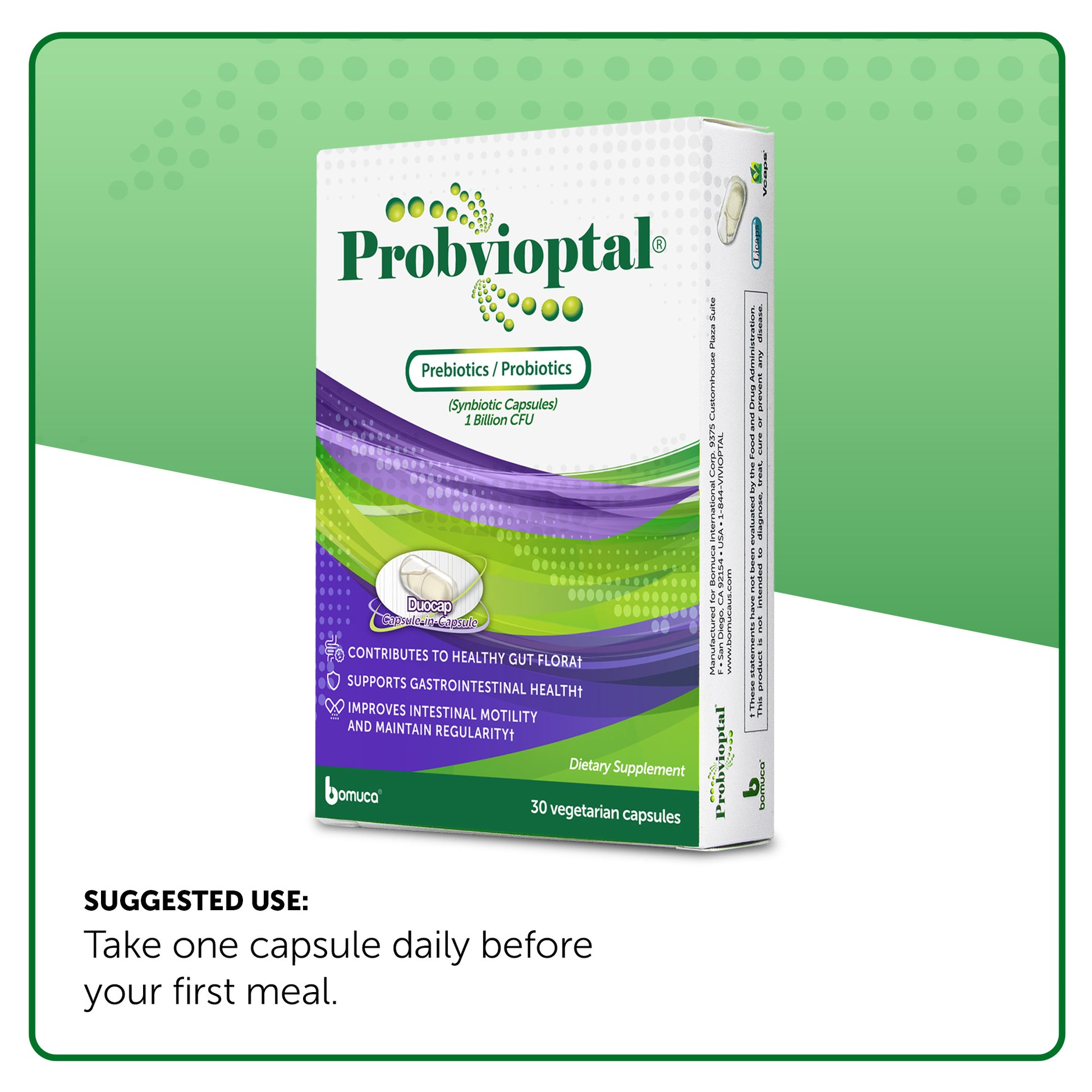 • Probvioptal is an innovative Prebiotic + Probiotic (Synbiotic) formula designed to support complete digestive wellness. It comes in vegetable Vcaps®, featuring a unique Capsule-in-Capsule (Duocap) system, developed with exclusive Licaps® technology, which enhances stability, protection, and absorption of the active ingredients.
