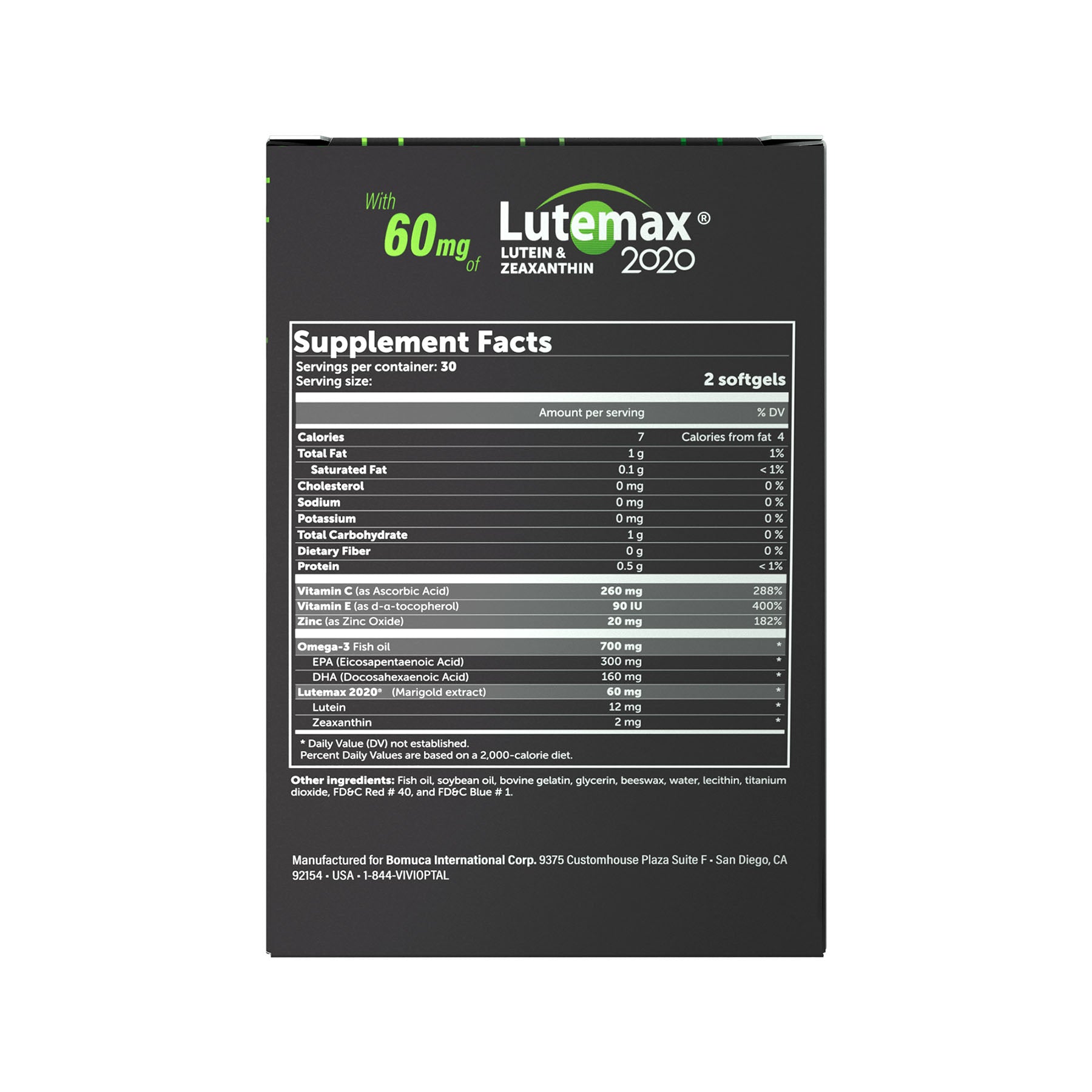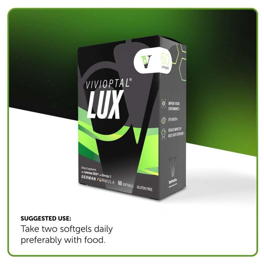 Significant exposure to high energy blue light comes from LED screens including television, tablets, smart phones and computers as well as some outdoor lightning. VIVIOPTAL Lux is a clinically formulated blend with Lutemax 2020, Omega-3, Zinc, Vitamin C, and E, designed to protect eyes from blue light, support vision clarity, and prevent age-related decline.